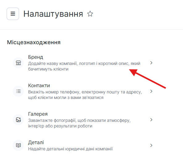 - Перейдіть до розділу Онлайн-запис > Налаштування. Перейдіть до блоку Бренд.