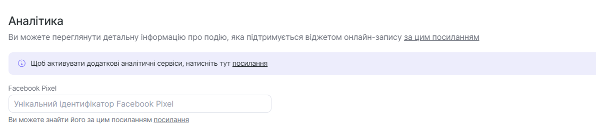 Новий віджет онлайн-запису інтегрований з наступними сервісами аналітики: