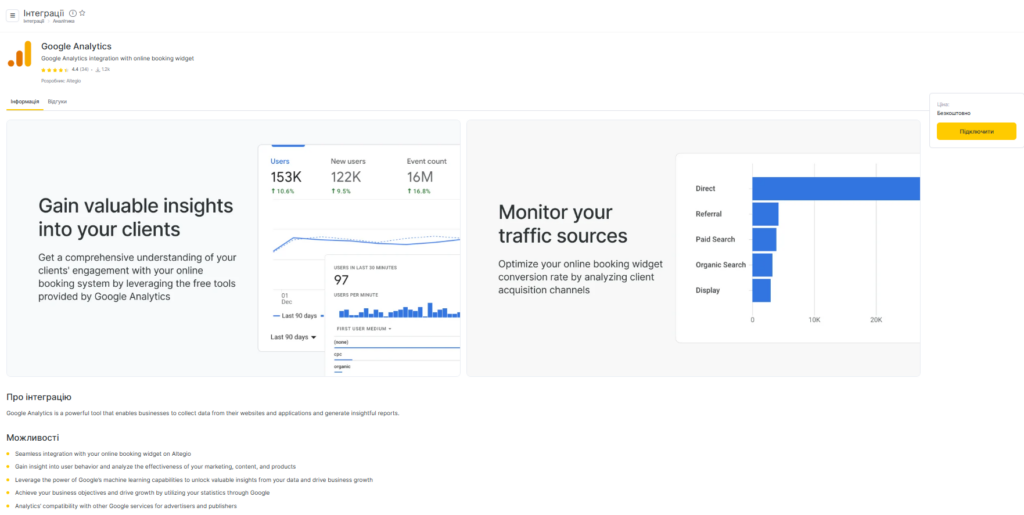 Аналітика форми онлайн-запису Altegio може потрапляти в сервіс аналітики в акаунт компанії. Аналітичні сервіси допомагають стежити за кількістю відвідувачів сайту чи сервісу, сегментувати їх за багатьма різними критеріями та відстежувати дії користувачів.