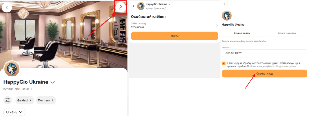 - Відкрийте сторінку онлайн-запису салону.