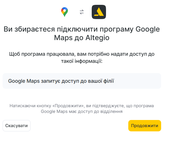 - На сторінці, що відкрилася, підтвердьте надання доступу до вашої філії, натиснувши кнопку Продовжити.