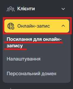 - Перейдіть до розділу Онлайн-запис > Посилання для онлайн запису.