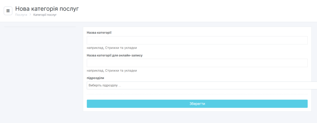 - Натисніть кнопку Зберегти. Додайте всі необхідні послуги до категорії.